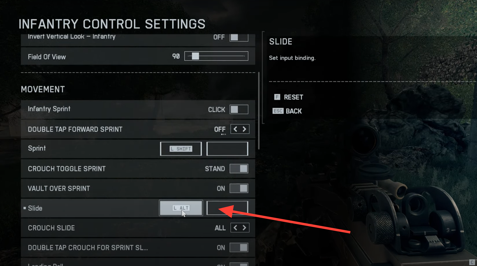 - Locate the "Slide" option to bind a dedicated key for sliding.