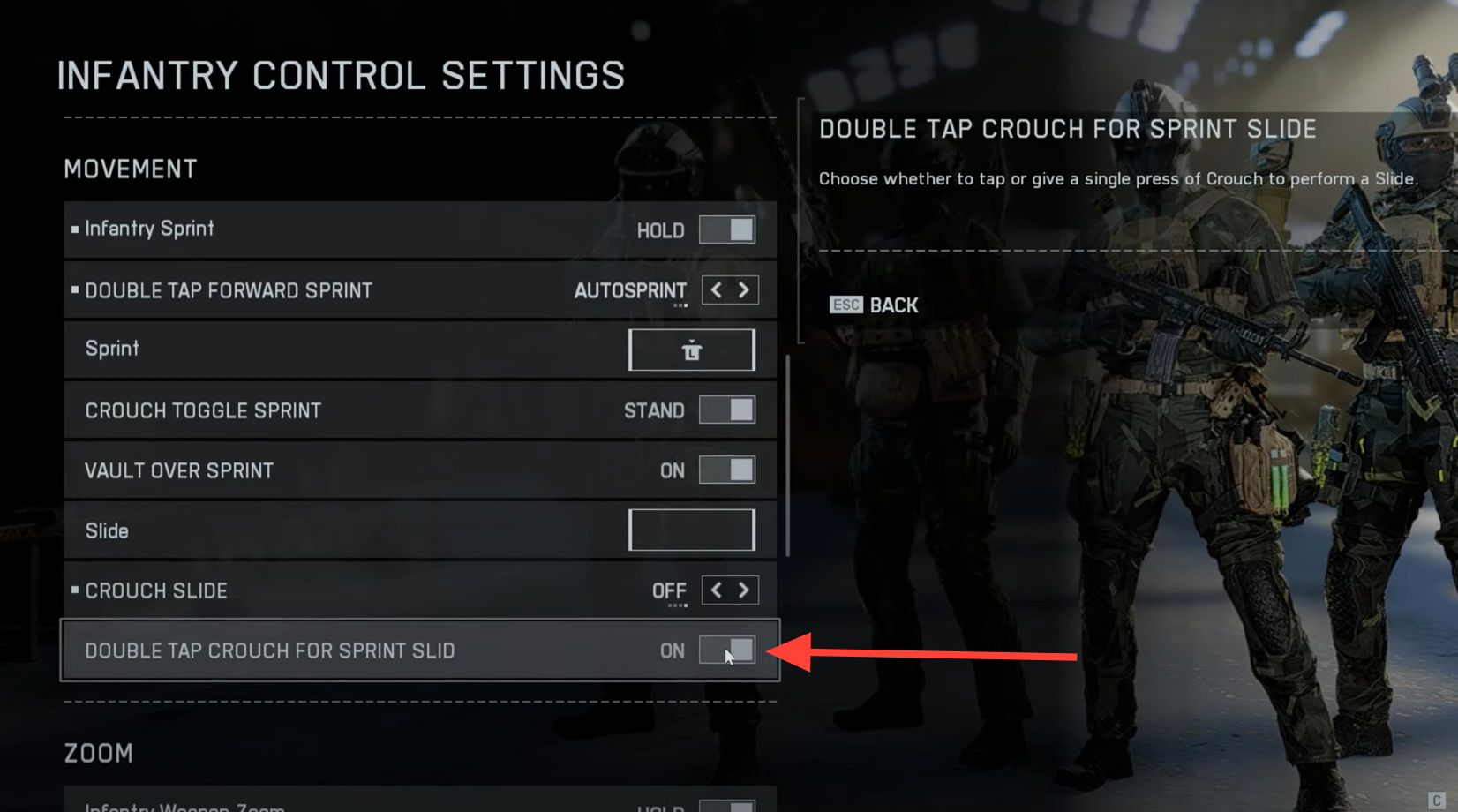 - On controllers, disabling double-tap crouch for slide lets you use a single tap for sliding.