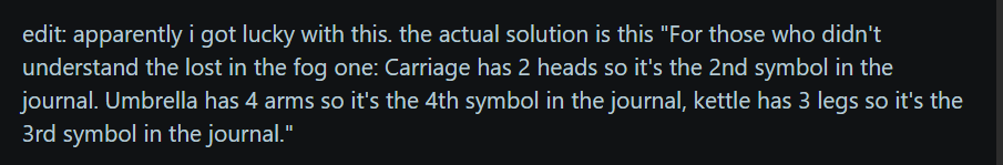 With ‘Lost in the Fog’ mode being vague, if you get stuck: