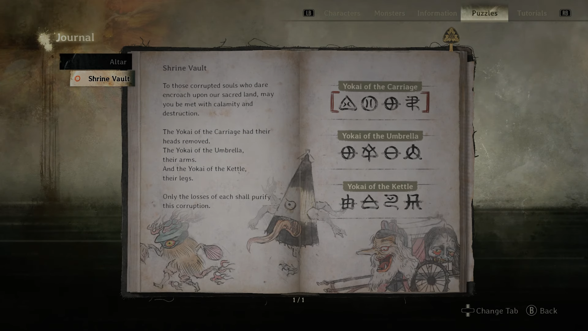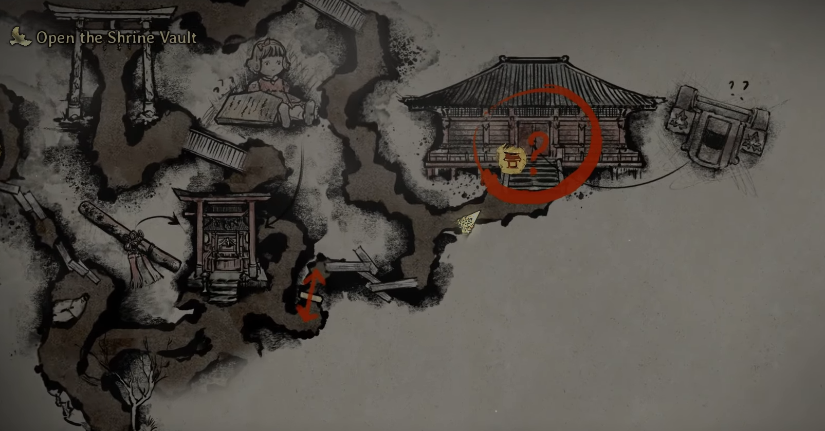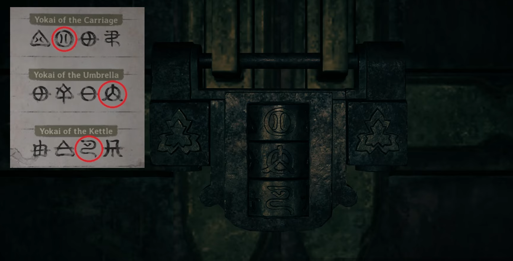 When you reach the Shrine Vault on the Dark Shrine Path, you’ll find a padlock requiring three symbols. To unlock it, you first need to retrieve the correct ema plaques in the surrounding area. Each of those ema, when flipped or inspected, show multiple symbols. The riddle from your journal tells you which symbol (among those options) is the “correct” one for each ema.