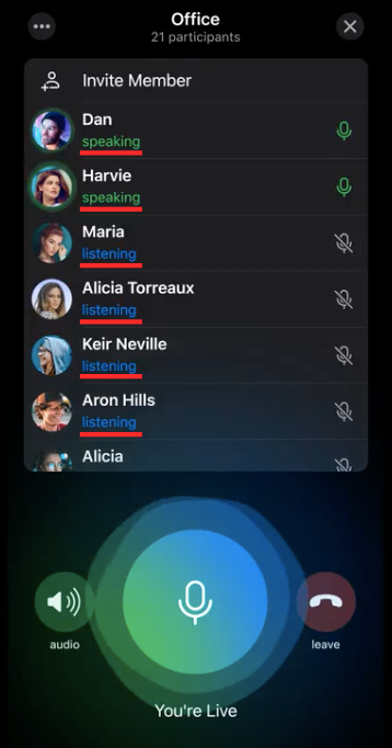 You can now start speaking in the Voice Chat and every time you speak up, other participants of the chat will be able to see that you’re speaking. You can also check the list of people in a Voice chat to see who is speaking and who is listening at any point in time.