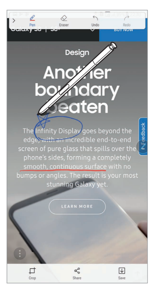 4. You will be directly in the editing menu where you can write on the screenshot using the S Pen.