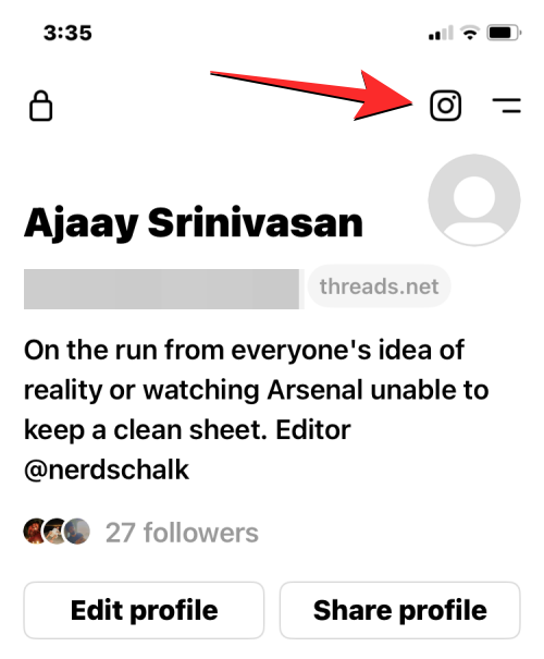 When your profile shows up on the next screen, tap on the Threads badge at the top (it’s a clickable number that shows up just underneath your Instagram bio).