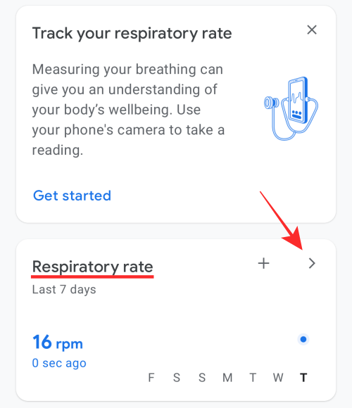 On this screen, scroll down and locate the ‘Respiratory rate’ section. Inside this section, tap on the rightward-facing arrow icon.
