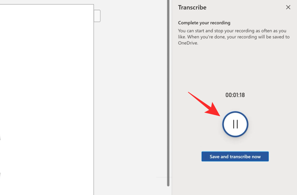 Once you are done, click ‘ Save and transcribe now’. Your recording will be saved to OneDrive.