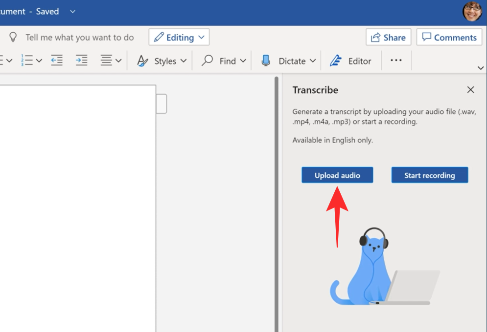 How to use the Transcribe function on Microsoft 365 Word