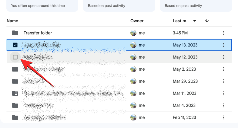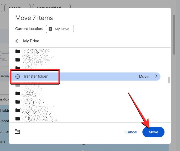 When you do that, the selected content from your Drive homepage will be moved inside the Transfer folder you created in Step 1.