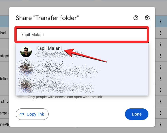 Once selected, you should see their name at the top box. Now, click on Send to confirm sharing access for the folder.