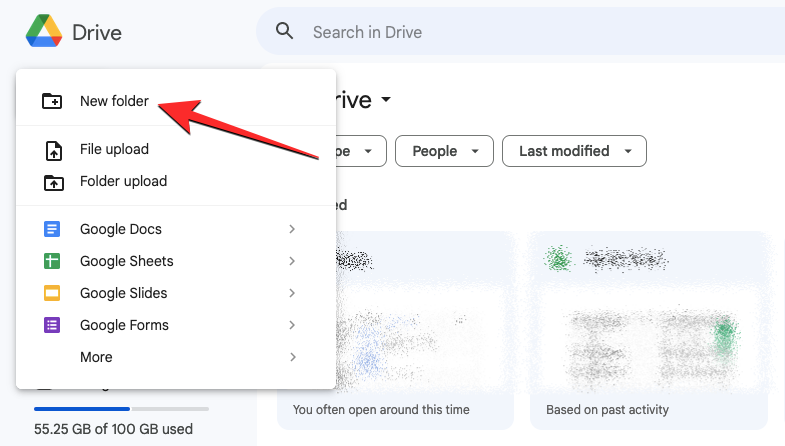 To get started, launch drive.google.com on a web browser on your computer and click on the + New button at the top left corner of the screen.
