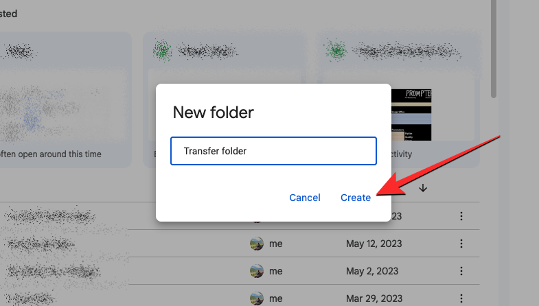You will see a New folder box appear on the screen where you’ll have to enter a name for the folder you’re creating. In this instance, we’ll name it “Transfer folder” and then click on Create to proceed.