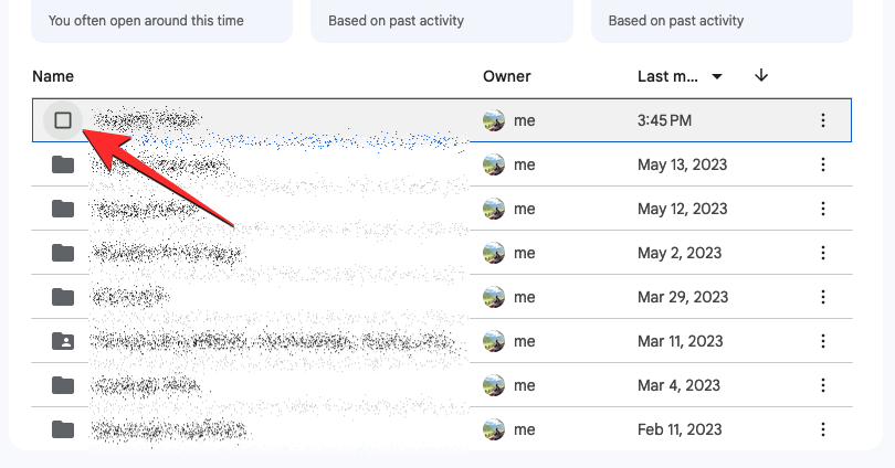 Now, it’s time to choose the files and folders you want to transfer from this Google account to another. To select a file/folder, hover over it and click on the check box on its left-hand side.