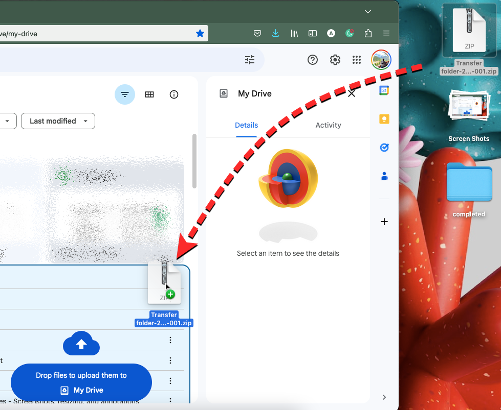 Once the ZIP file has been downloaded completely, you can extract it to a new folder. You can then, drag and drop this folder or the contents inside it to your secondary account’s Google Drive.