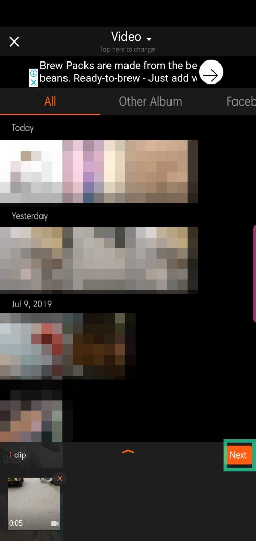 Step 3. Select the video you want to edit and tap Next.