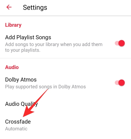 Under the ‘Audio’ tab, you’ll find the Crossfade option. Tap on it.