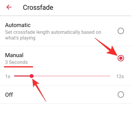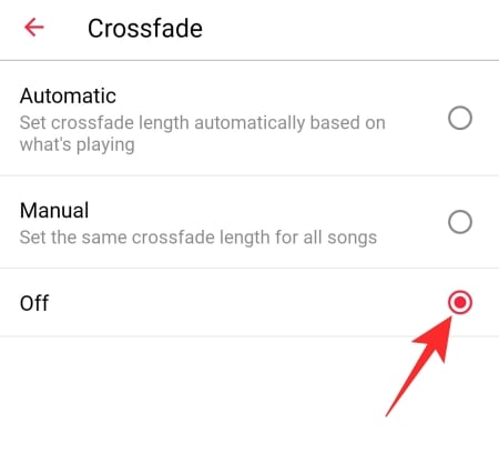 If you don’t like the concept of crossfade and wish to go back to the olden days, you can always choose to turn of crossfade entirely. Tap on ‘Off’ and exit the area.