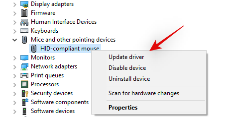 Now find your mouse under this section, right-click on it and select ‘Update driver’.