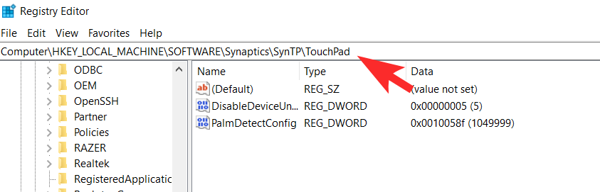 Copy this text: Computer\HKEY_LOCAL_MACHINE\SOFTWARE\Synaptics\SynTP\TouchPad