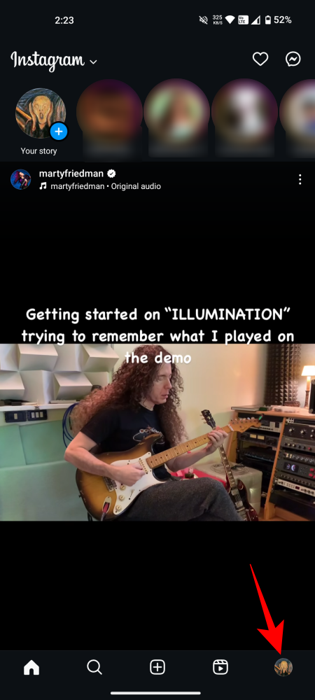 1. Open Instagram and log in to your account if needed. Once logged in, tap your profile picture in the bottom right corner and then the Hamburger icon in the top right corner.