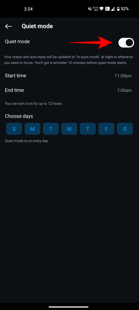 • Anyone who messages you will also be prompted to turn on Quiet Mode so that they can take a break.
