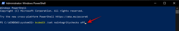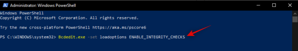 Bcdedit.exe -set loadoptions ENABLE_INTEGRITY_CHECKS