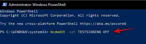 bcdedit -set TESTSIGNING OFF