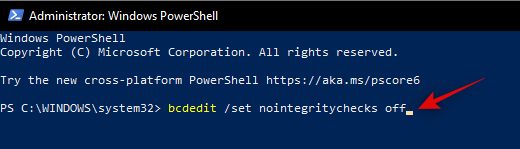 Bcdedit.exe -set loadoptions ENABLE_INTEGRITY_CHECKS