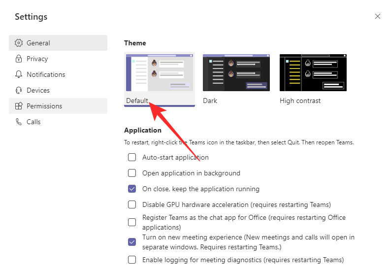 Clicking on ‘Settings’ would land you on the ‘General’ tab where you would spot the current theme of Microsoft Teams right at the top. Click on ‘Dark’ and see the application changed its shade.