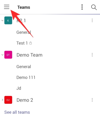 Similarly, on your mobile, launch the Microsoft Teams application and tap on the hamburger menu at the top-left corner of the application window.
