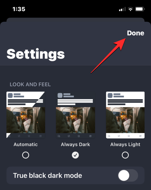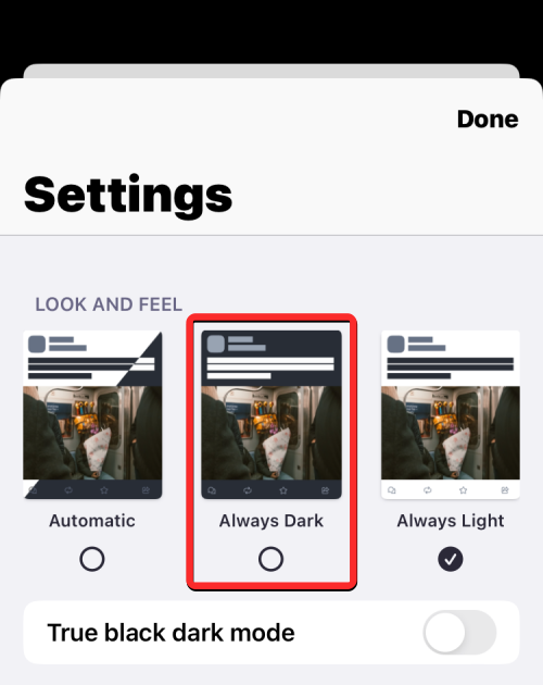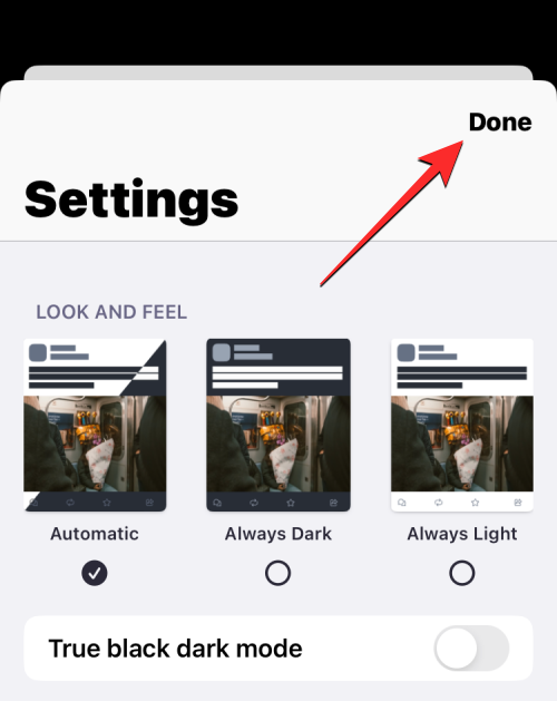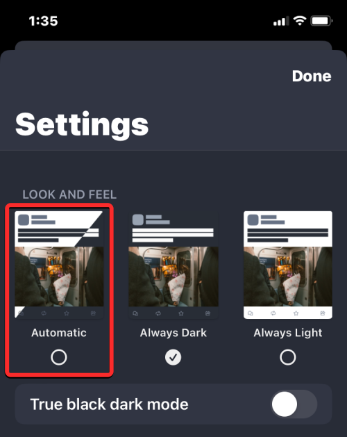 Inside the Settings screen, tap on Automatic under “Look and Feel”.
