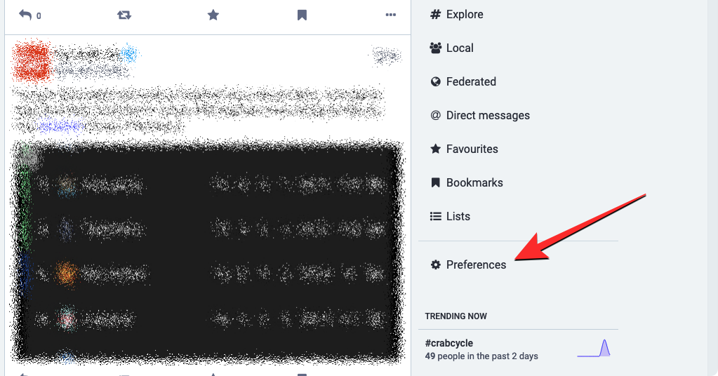 To apply this theme, open your Mastodon instance on a web browser. When your instance opens, click on the Preferences tab on the right sidebar.