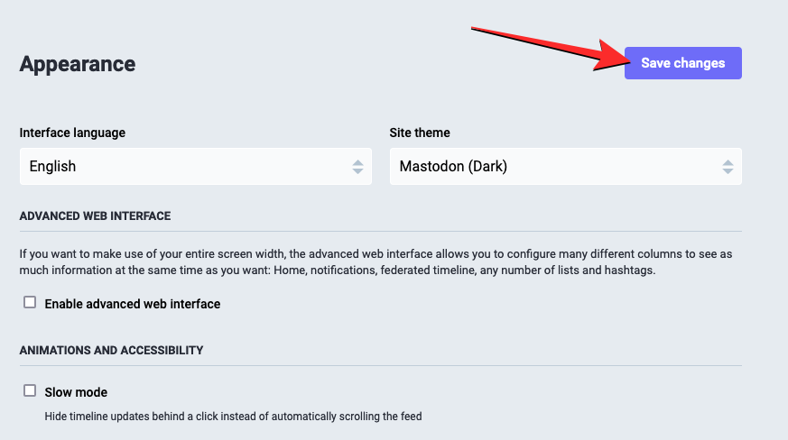 When using its web client, Mastodon defaults to its dark mode unless you change it. While on Dark mode, most of the UI’s background switches to dark grey (not deep black) while the timeline in the middle has a slightly less dark grey background. If for some reason, the web client on your browser shows Mastodon in Light theme, you can manually change its appearance to Dark mode when you want to.