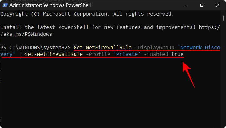 - Then hit Enter. Once you receive the “updated rule” message, network discovery will be turned on.