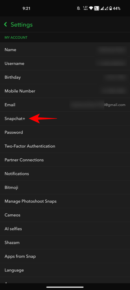 - Alternatively, tap on Settings (gear icon) at the top right corner. Tap on Snapchat+.