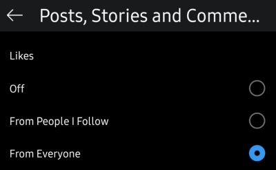 Finally, choose either ‘From People I Follow’ or ‘From Everyone’ under ‘Likes.’