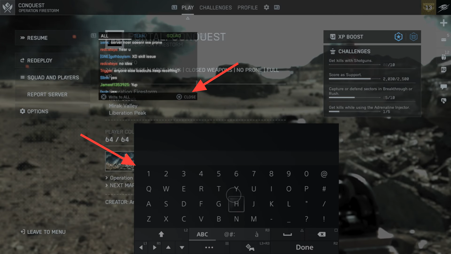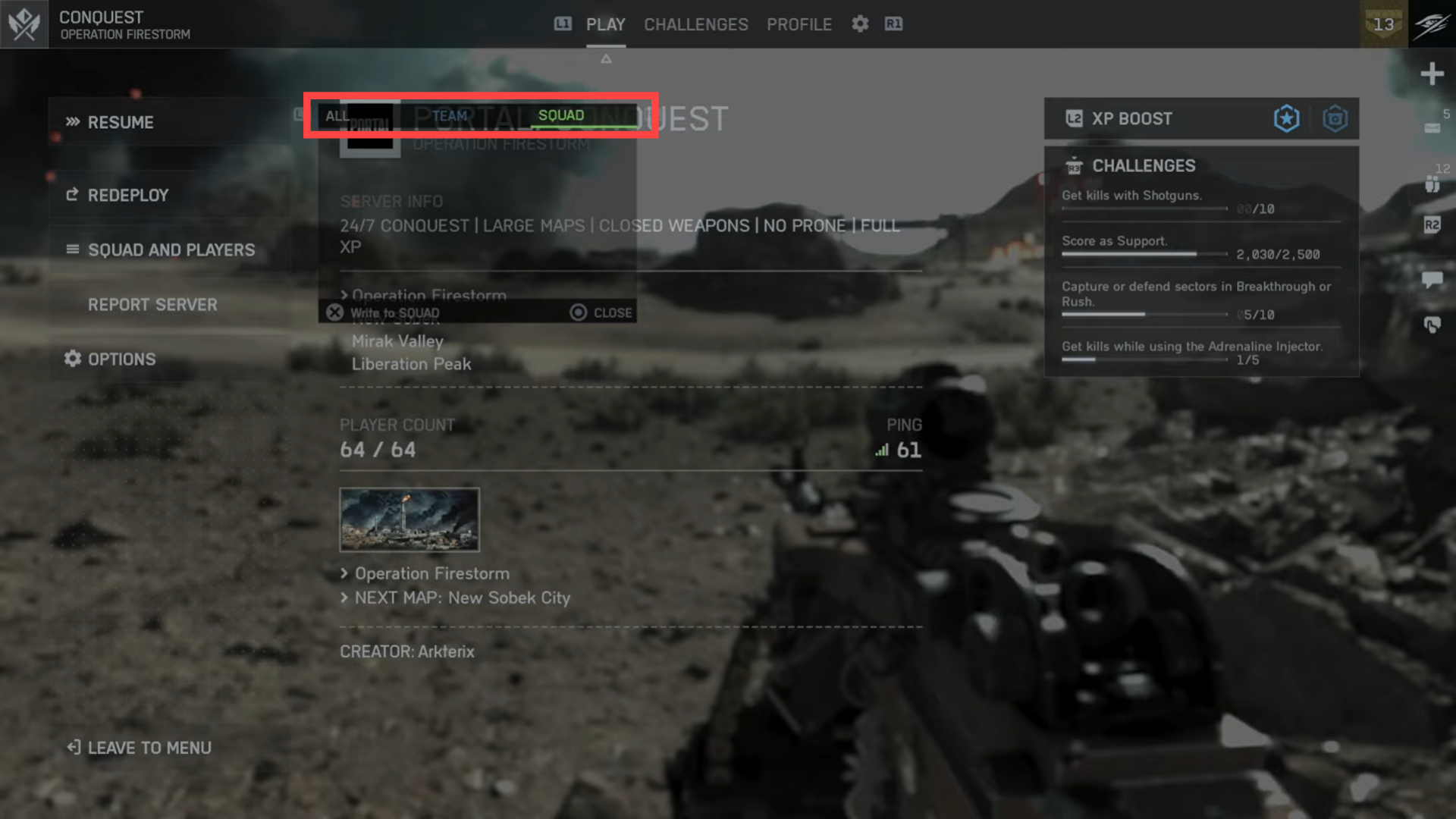 - You can switch chat channels between Squad, Team, and All before sending messages.