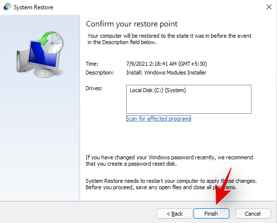 Windows 11 will now restore your system to the selected restore point and the concerned app should no longer be on your system once the process is completed.