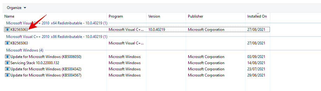 You will now get a list of all the recently installed Windows Updates on your system in a table format. Note down the KB number for the selected Windows Update.