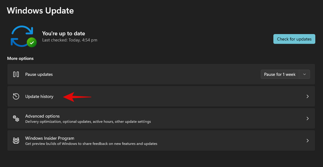 Click on ‘Update history’ now.