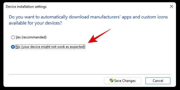 Press Windows + S on your keyboard and search for ‘Change device installation settings’. Click and launch the app from your search results.