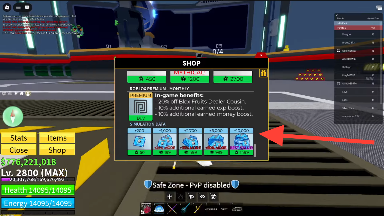 Open the Blox Fruits Shop from the main menu, find the Simulation Data packs, choose the amount you want, and buy it with Robux, the Simulation Data is added to your account instantly.
