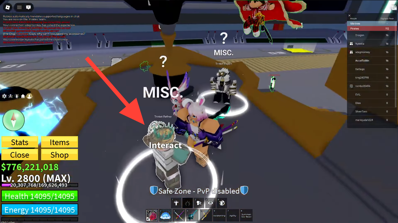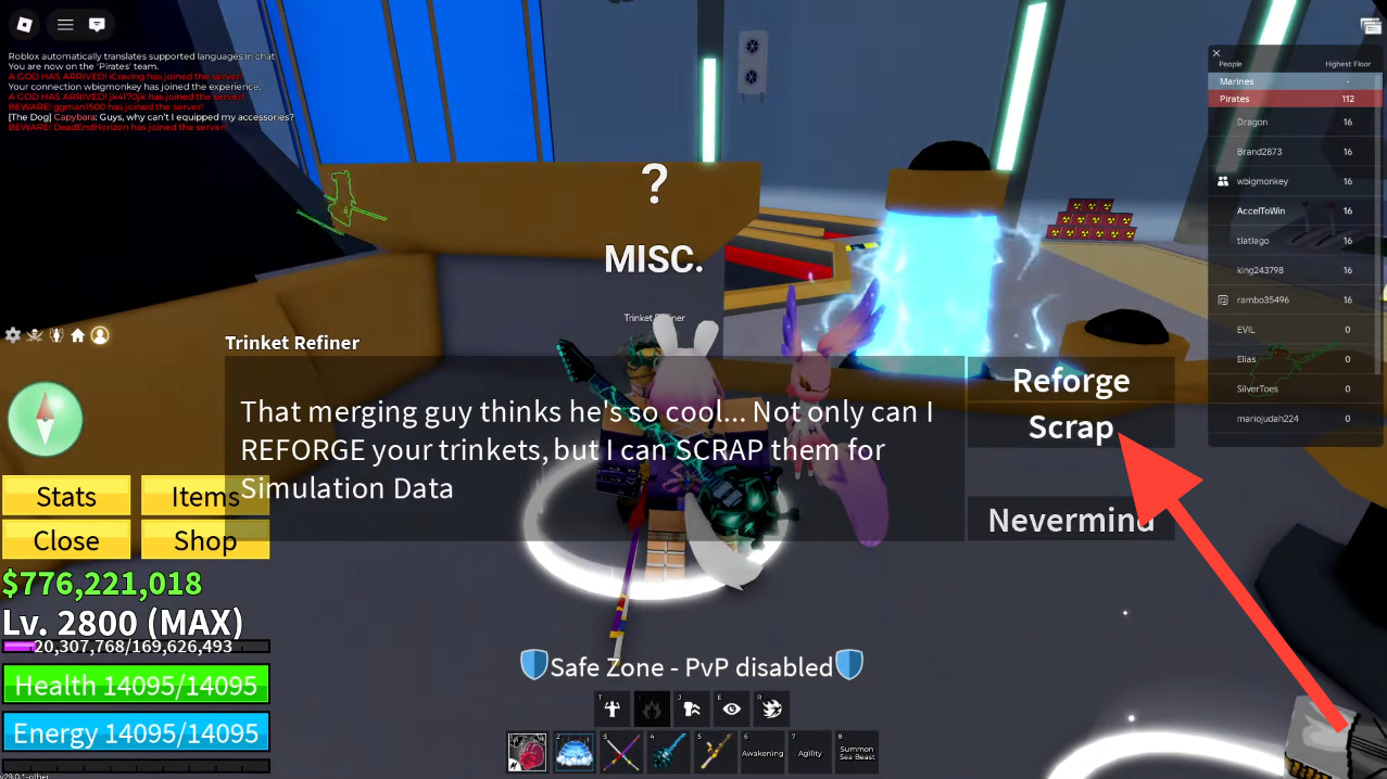 Using the Trinket Refiner NPC to get Simulation Data (Image credit: Gamer Robot Inc. | Via: YouTube - AccelToWin)