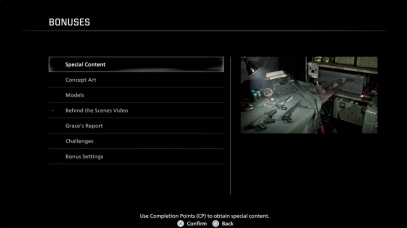 This shop includes concept art, 3D models, behind-the-scenes videos, and Grace’s Report files. More importantly, it becomes the central hub for purchasing gameplay-altering unlockables using CP. CP does not reset between runs, so every challenge permanently contributes toward unlocking more powerful content.