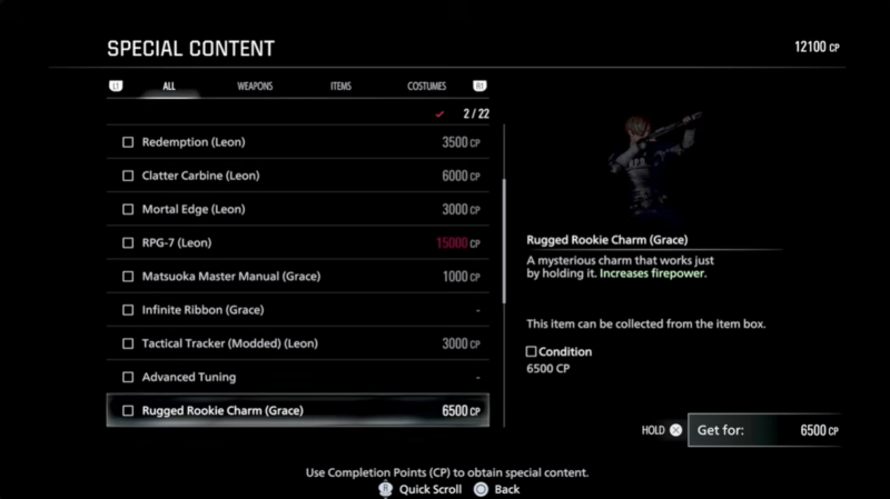 Not all costumes are cosmetic. The Rugged Rookie outfit, inspired by Resident Evil 2 Leon, costs 6,500 CP and increases firepower.