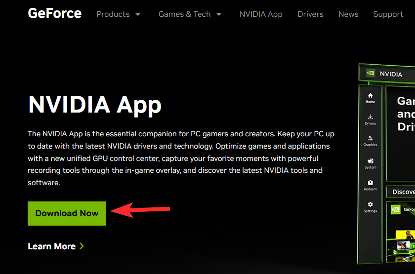Open your web browser and go to the official NVIDIA website at https://www.nvidia.com/en-in/software/nvidia-app/. Click the "Download now" button to start the download of NVIDIA app.