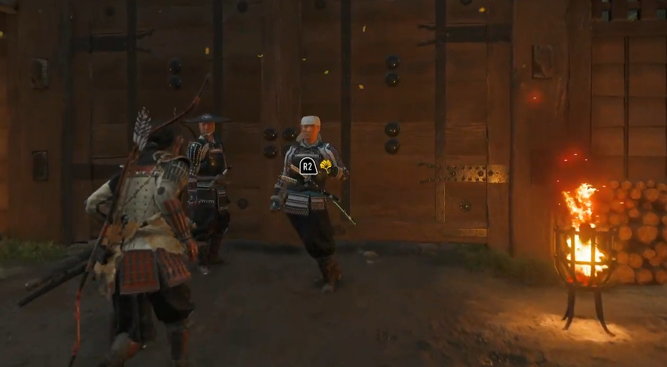 The merchants near the gate and in Ishikari Market sell useful items such as sake for spirit replenishment, throwable items, and masks like the Fire Tengu Mask. Stock up early to prepare for tough encounters.