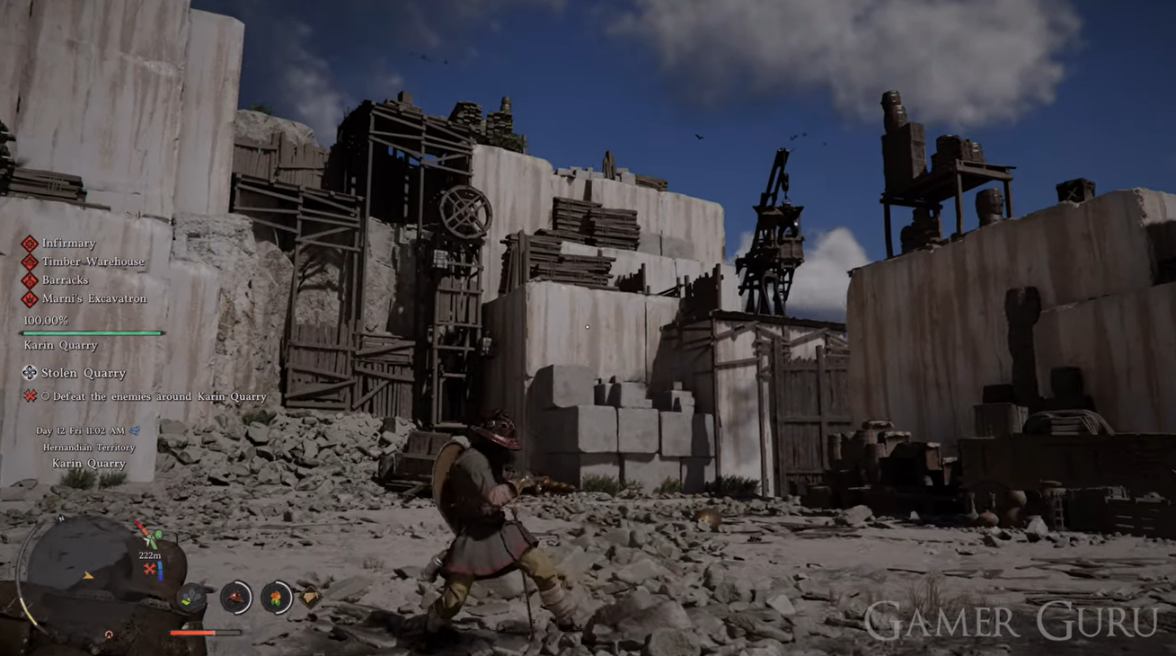 Follow the quest marker to the quarry location indicated on your map. The journey is relatively linear, but you may encounter enemies along the way.