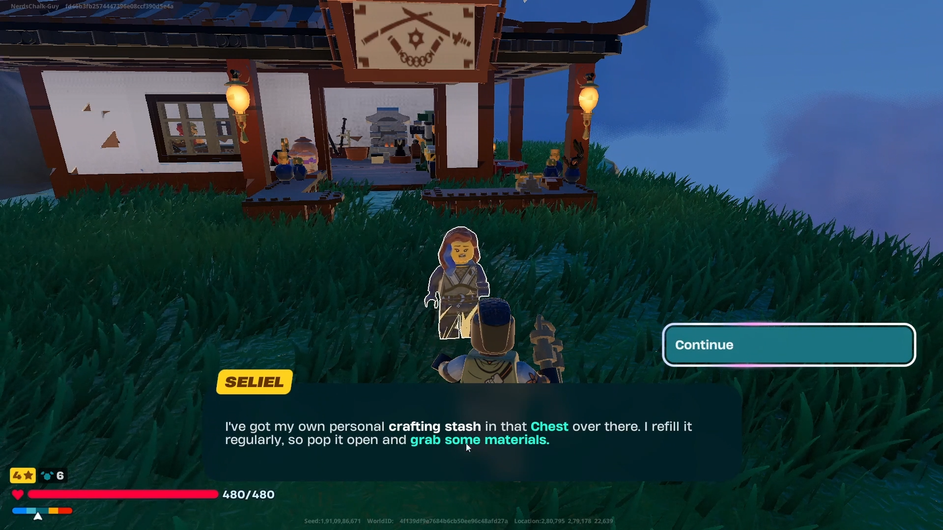 Speak with Seliel, who reveals a chest of extra crafting supplies you can use.