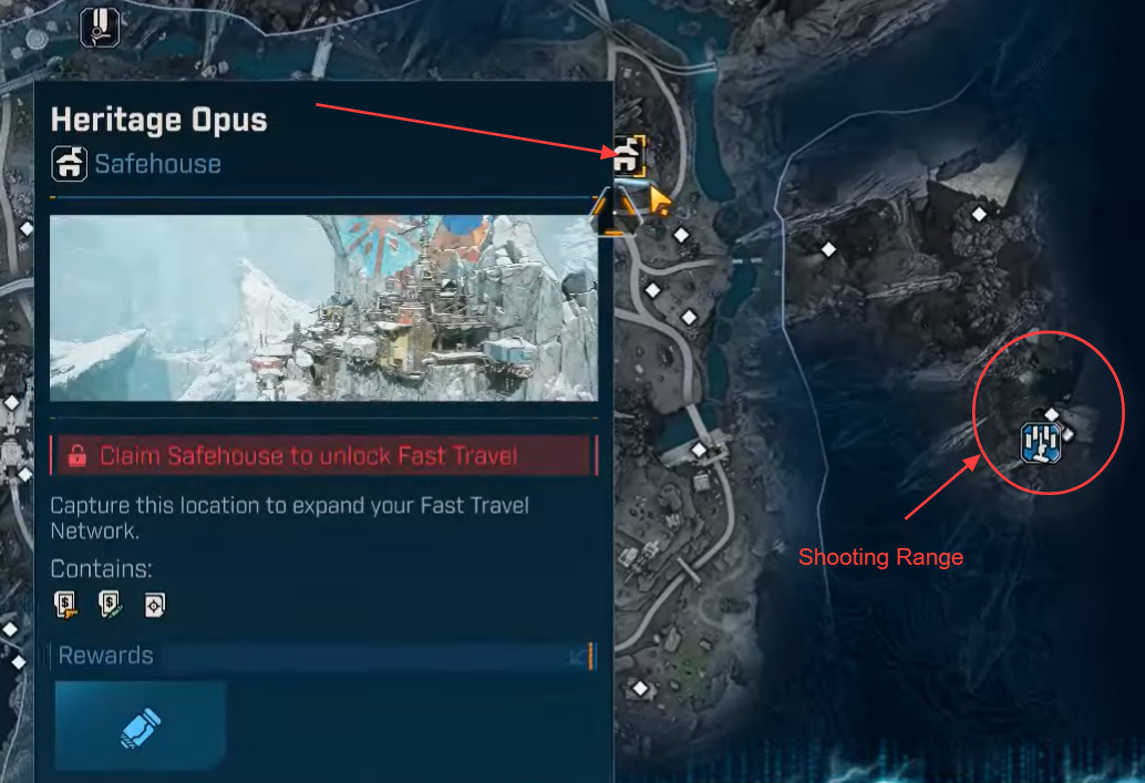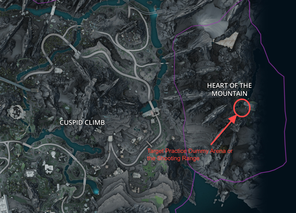 Once in Terminus Range, head toward the eastern side of the area (right side on the map) to locate the shooting range. Community reports say the shooting range is on that flank. You can get here during the "His Vile Sanctum" mission or after the "Shadow of the Mountain" mission.