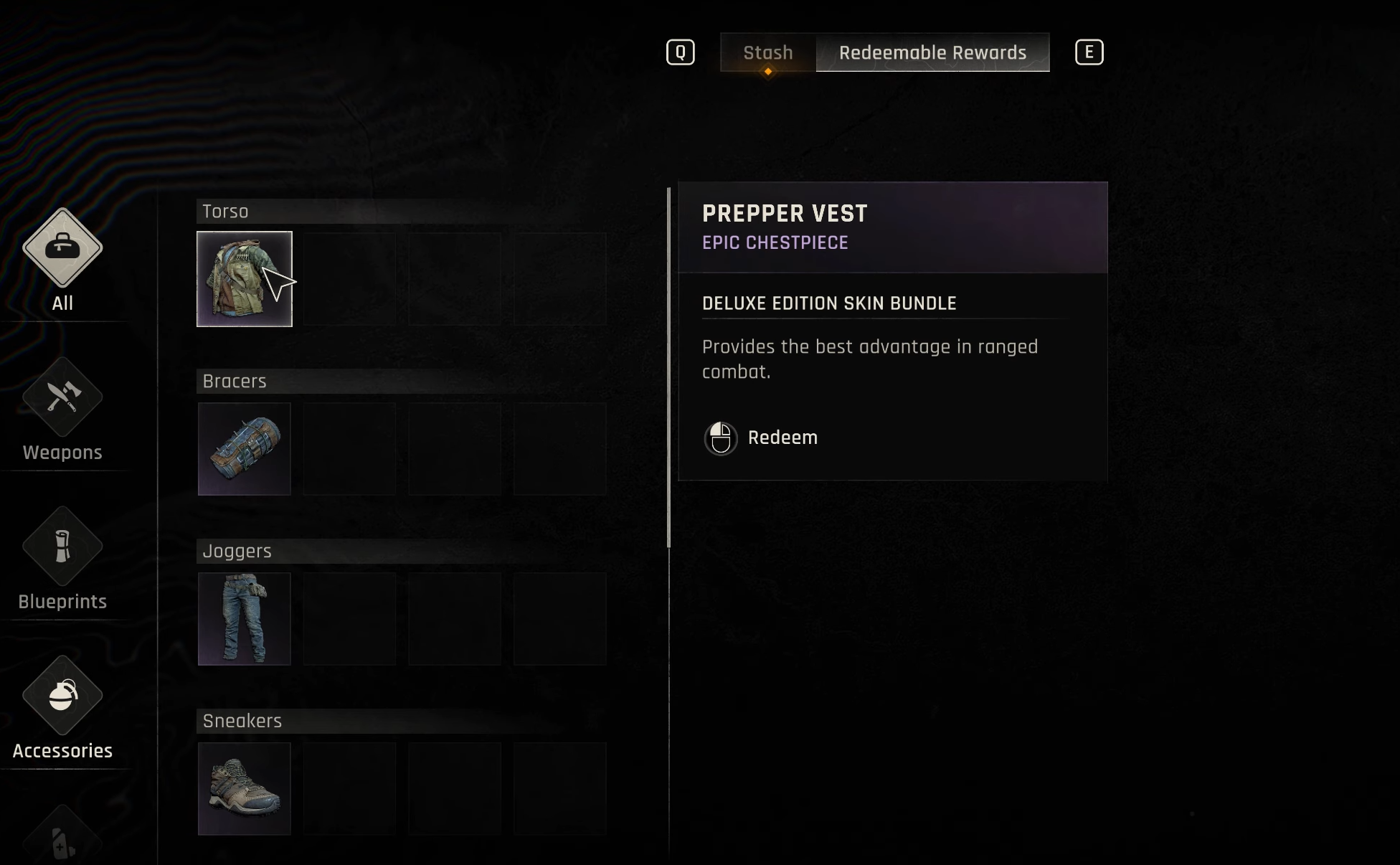 | Prepper Gear Set | Stat-boosting gear pieces best for ranged and survival playstyles. |