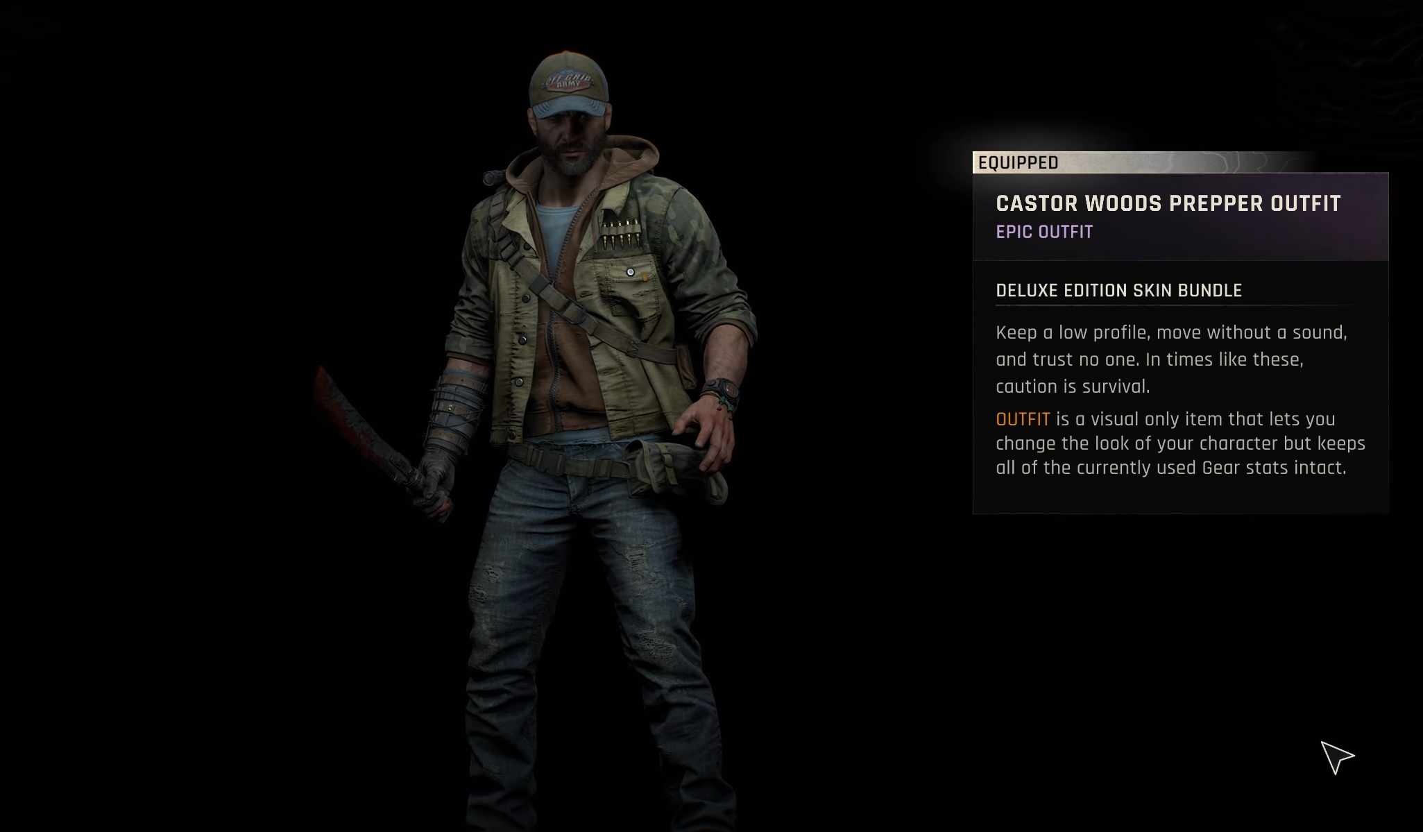 | Castor Woods Prepper Outfit | Stylish survival-themed full-body outfit for Kyle Crane. |